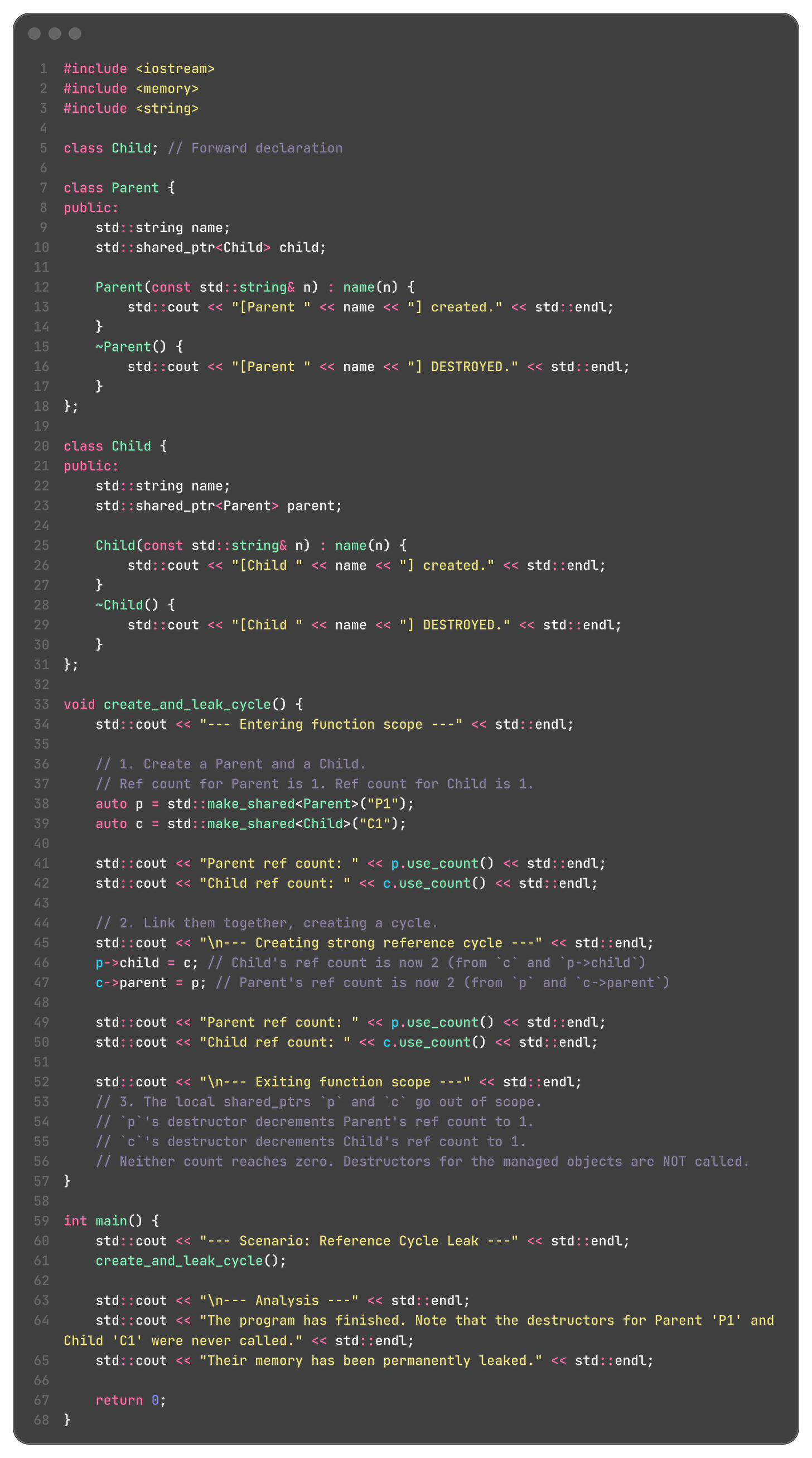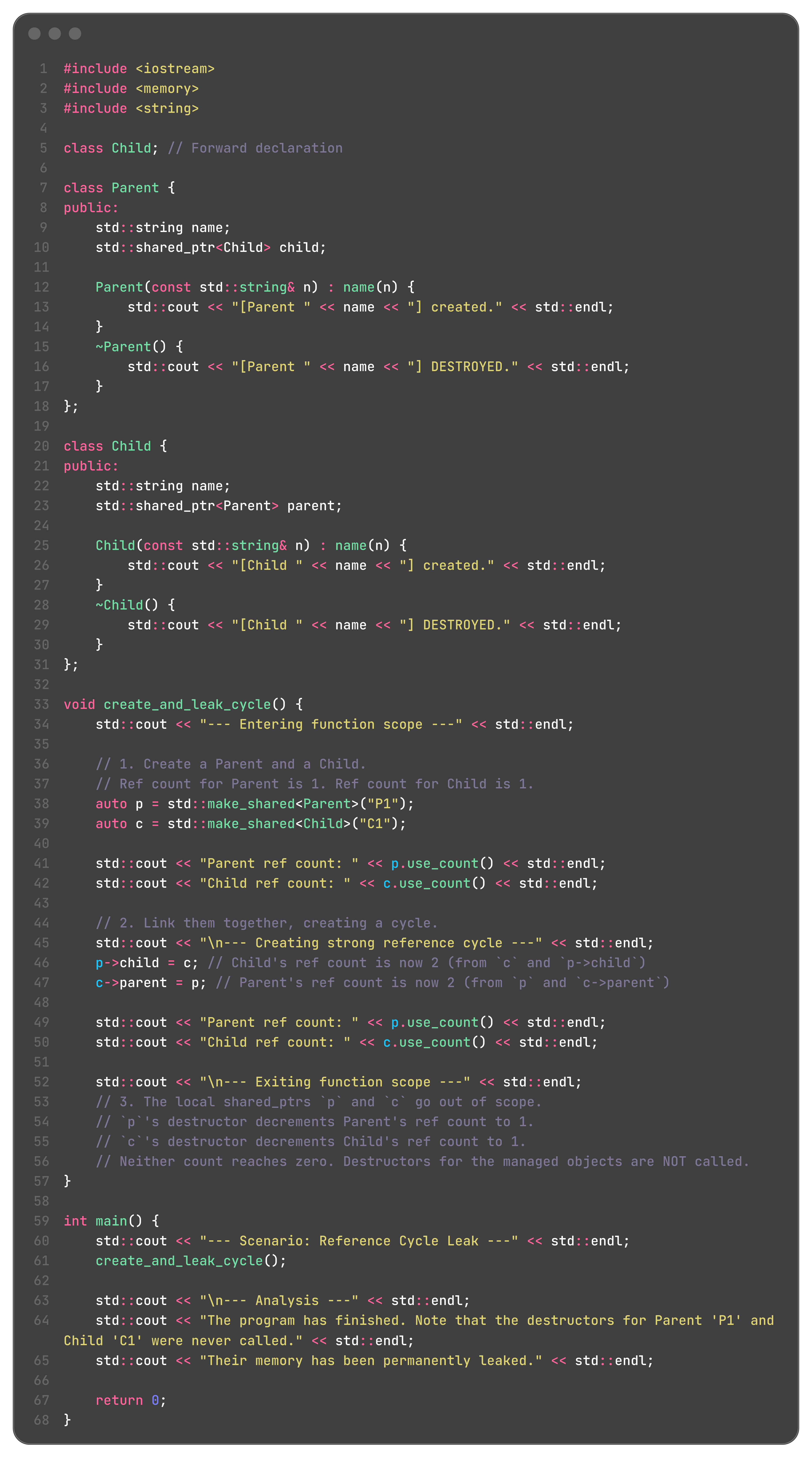 but shared_ptr has a major drawback of Cyclic Dependencies